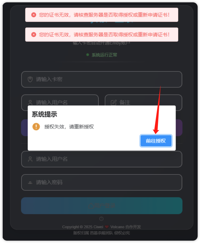 同时具备用户管理 自助注册 卡密激活 多种通知 用户到期通知 丰富的资源浏览 风控管理 入库状态等功能多合一
