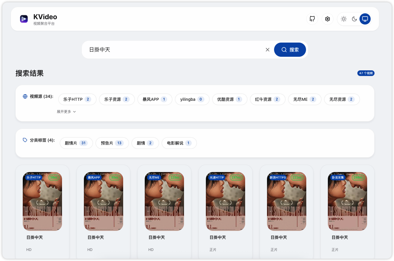 KVideo 是一个现代化的开源视频聚合与播放平台,基于 Next.js 16、React 19 和 TypeScript 构建,旨在为用户提供一个流畅、美观且功能丰富的在线视频体验。它采用了独特的 Liquid Glass 设计语言,配合响应式布局和精致动画,使界面既具现代感又操作友好。KVideo 的核心功能包括对 多视频源的并行搜索与聚合、