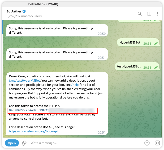 (4). 给自己的机器人起一个独一无二的 ID。注意:以 bot 或 _bot 结尾