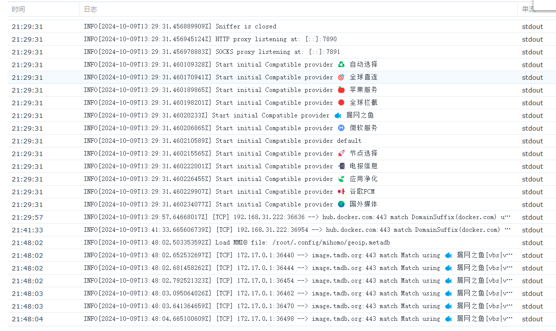 将config.yaml geoip.metadb文件放置/docker/mihomo/config目录下